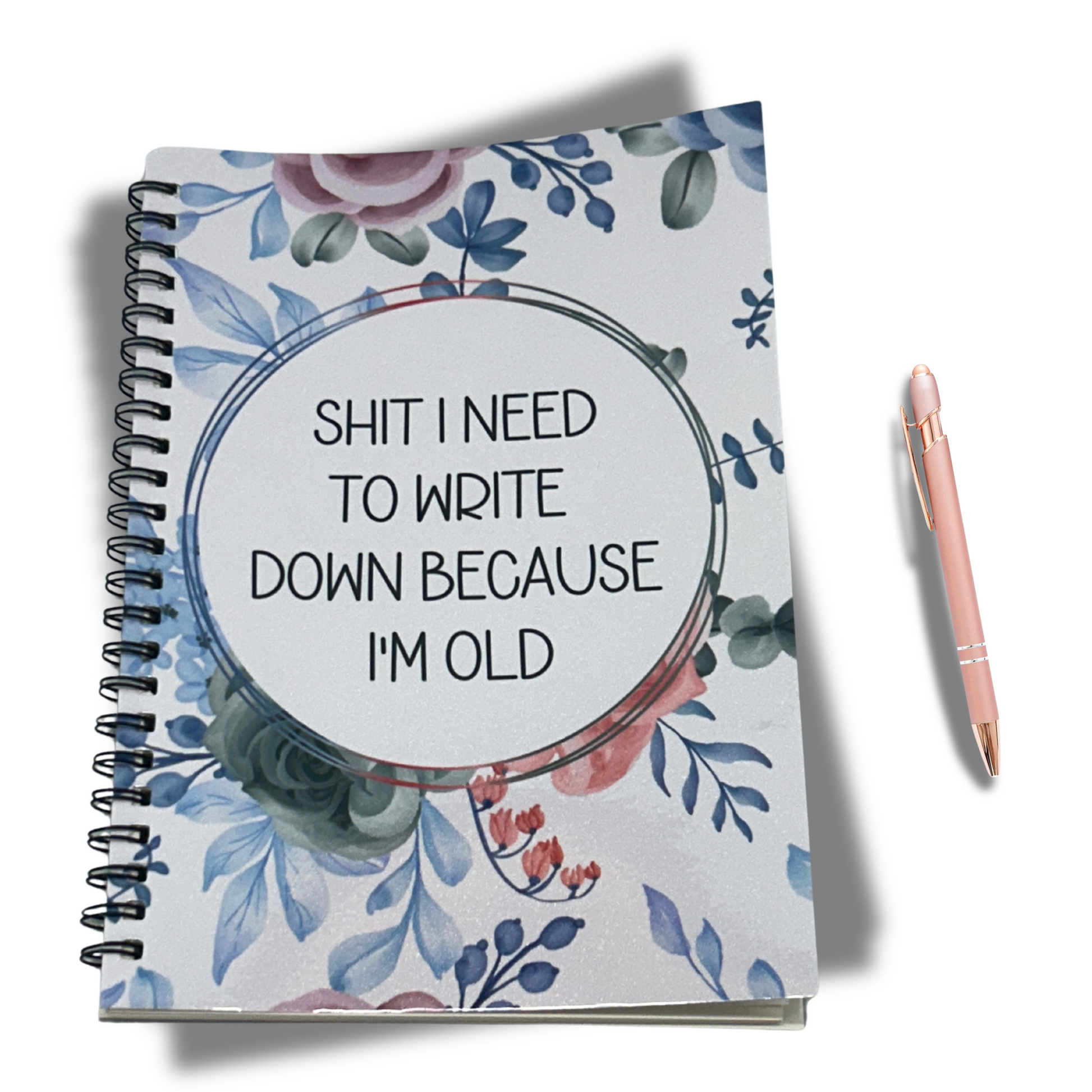 Stay organized and jot down all your notes in this spiral notebook for the forgetful and "experienced". Never forget an important detail with this handy tool. Time to get your shit together!
