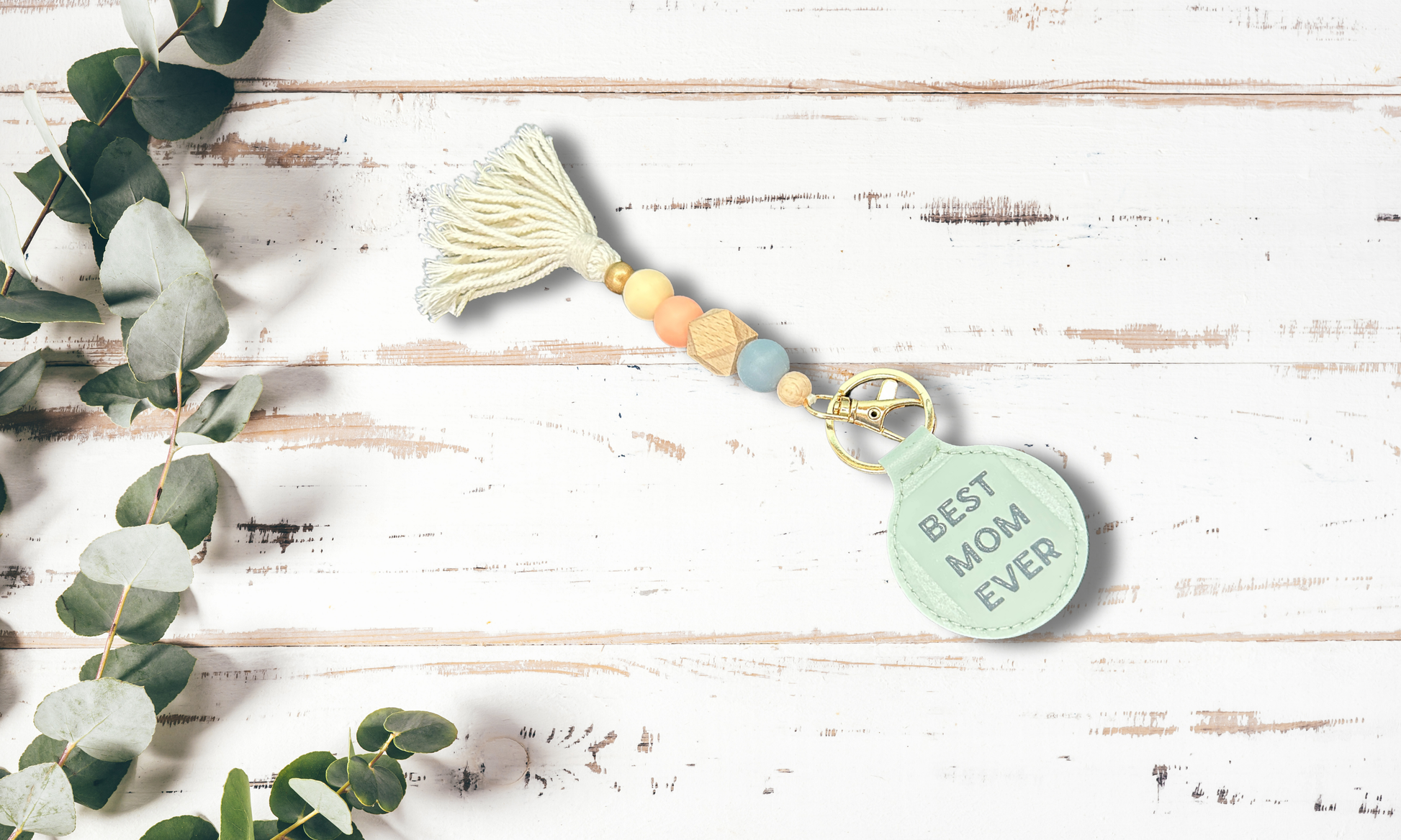 Mom's got the keys with this trendy macrame key chain. Show her she's the best (the "Best mom ever") with this unique and practical accessory. Keeping keys stylish and secure.