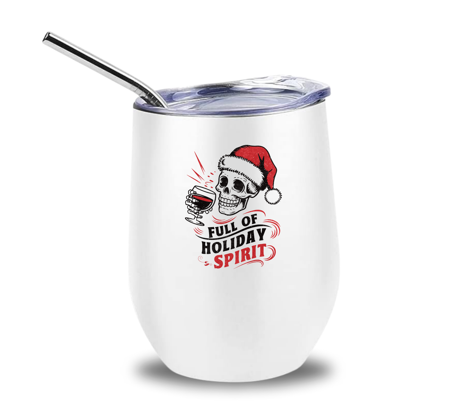 Celebrate in style with the "Full of Holiday Spirit" wine tumbler. Its cheerful design keeps your favorite drinks perfectly chilled while adding a splash of playful holiday charm. Whether at a party or relaxing at home, this tumbler is your go-to for festive fun and flavorful sips!