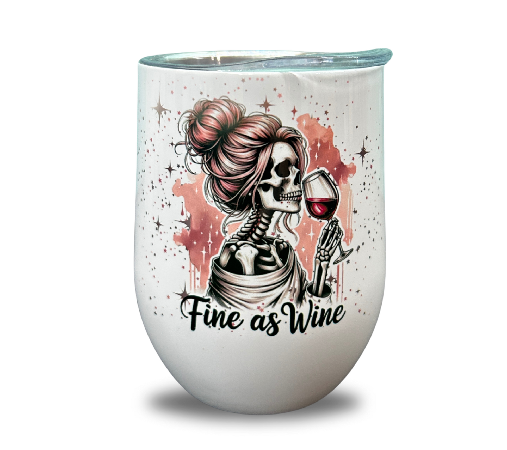 Elevate your outdoor sipping game with this 12 oz wine tumbler. Its sleek design keeps your wine at the perfect temperature while adding a touch of class to any excursion. And let's not forget, it's not just any wine, it's Fine as Wine!
