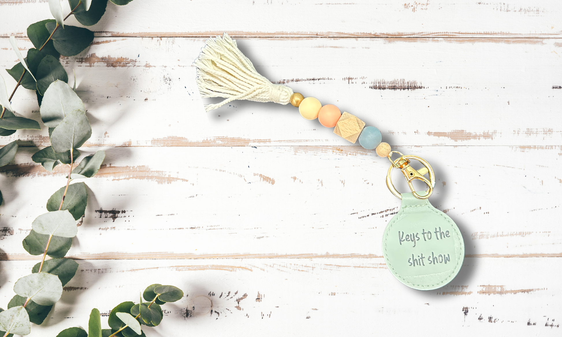 Get ready for the shit show with our macrame keychain - the perfect accessory for keeping your keys stylish and secure. No more fumbling for your keys - this keychain adds a touch of bohemian flair to your everyday life. Don't miss out on these keys to the shit show!