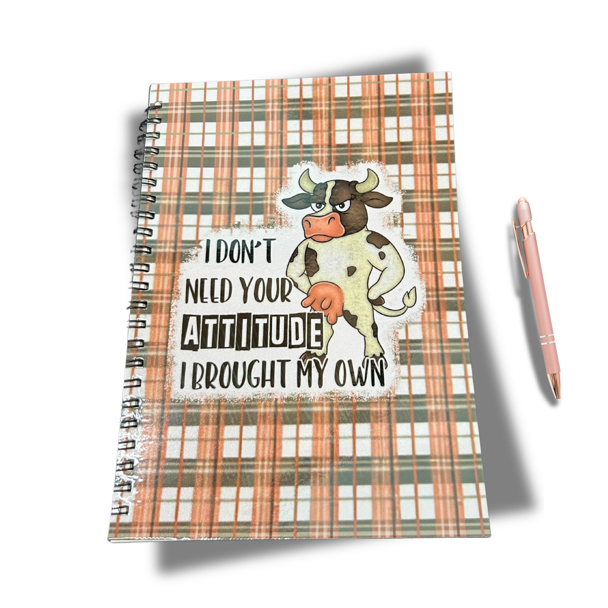Express your own flair with this fun notebook and pen set boldly declaring, "I don't need your attitude, I brought my own." Perfect for sketching, jotting, or planning, it’s designed to keep your thoughts sharp and your style playful. Add a touch of sass to your everyday writing!