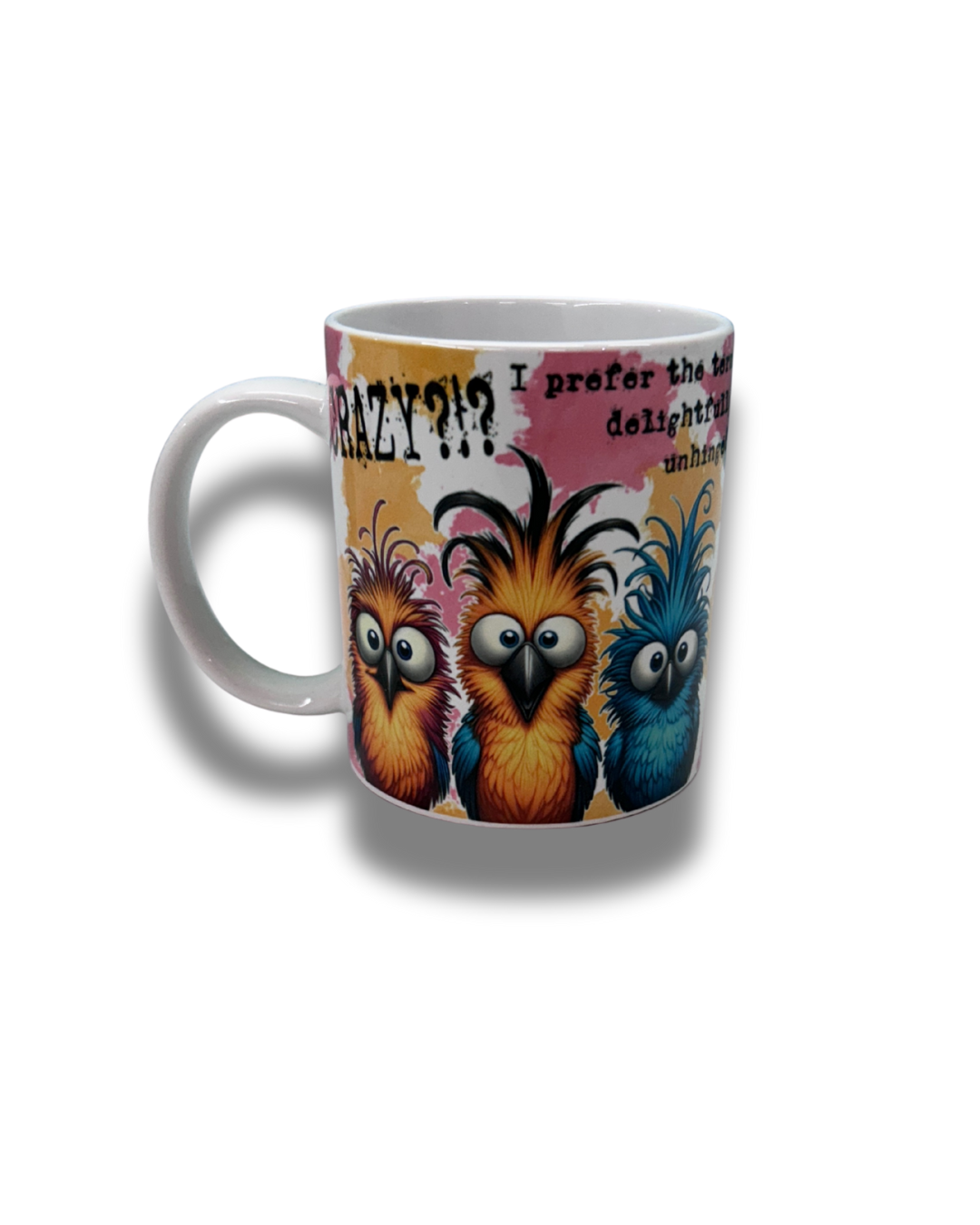 Start your day with a smile using this 12 oz ceramic mug featuring the cheeky phrase, "Crazy?!? I prefer the term delightfully unhinged." Perfect for coffee or tea lovers who embrace their quirky side, this sturdy mug combines practicality with playful charm to brighten every sip.