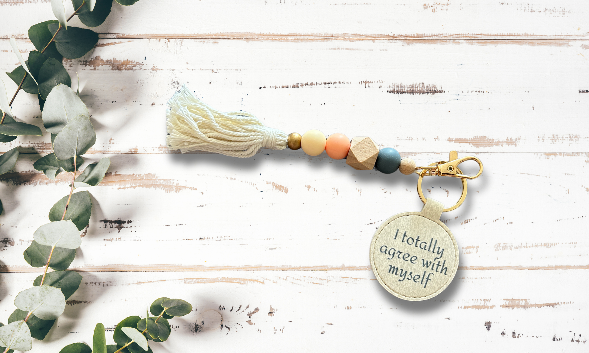 Elevate your keychain game with the uber-chic macrame keychain from I totally agree with myself. A fun and playful way to keep your keys organized and add some boho flair to your style. Say goodbye to boring keychains and hello to this must-have accessory!