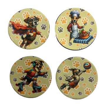 Sporty pups bring their A-game with this coaster set. Keep your table free from water marks and add a playful touch to your home decor. These coasters are a slam dunk for any dog lover or sports fan.